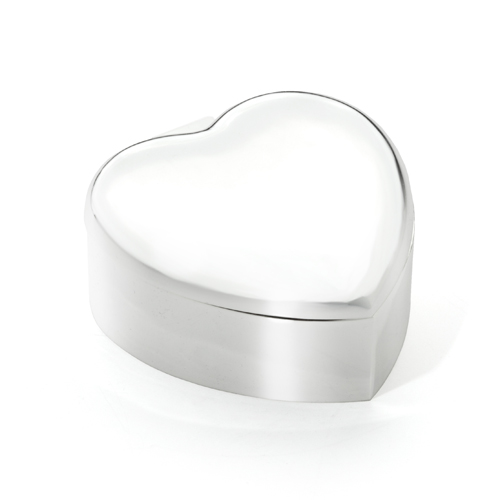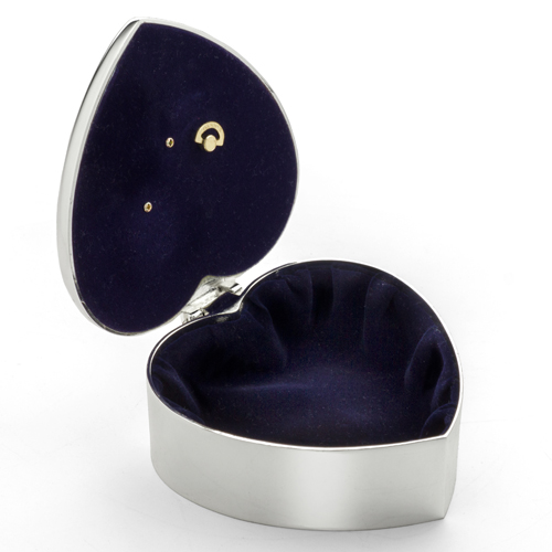 Verzilverd sieraden muziekdoosje in de vorm van een hart. Wanneer het speeldoosje is opgewonden, speelt er een muziekje af. De afmetingen zijn 104*100*48 mm (l*b*h).