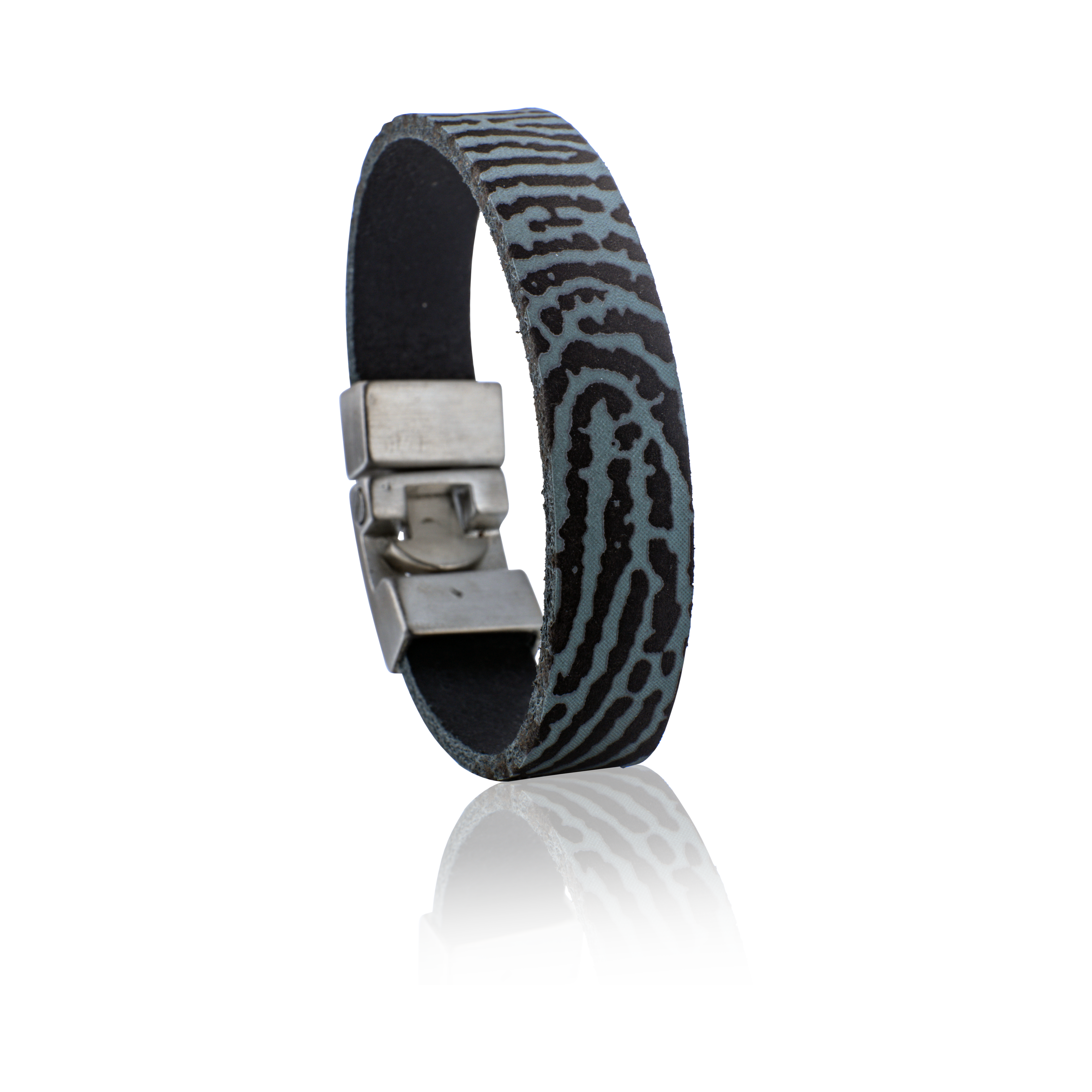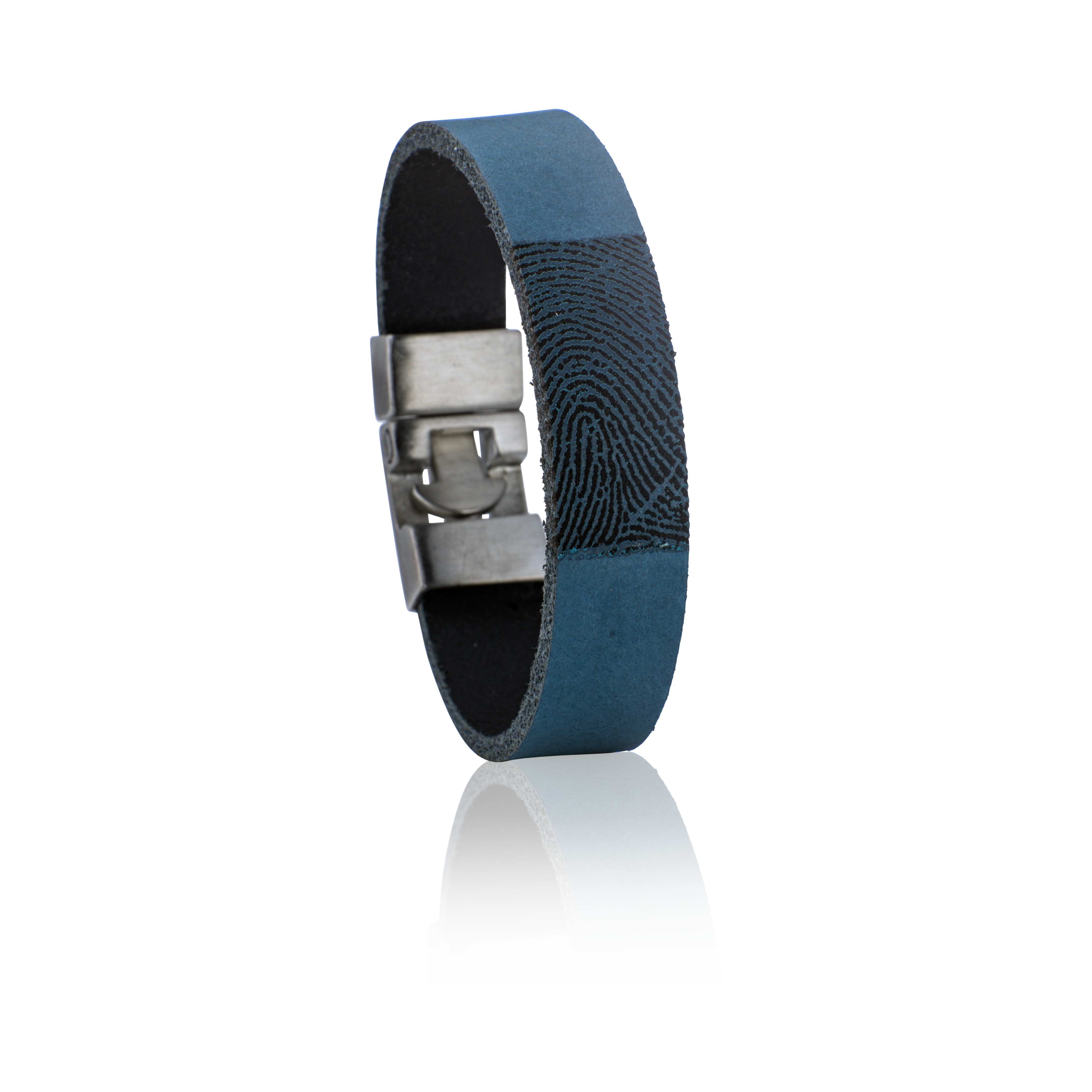 Deze vingeradruk armband is verkrijgbaar in diverse kleuren leer. Leer is een natuurproduct, dus de kleur kan iets afwijken