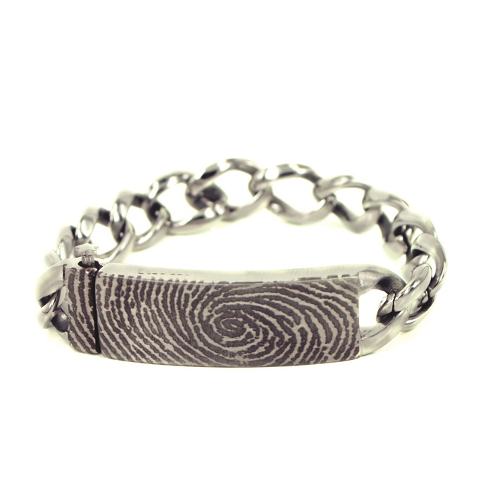 Deze armband met vingerafdruk is in diverse lengtes te bestellen, de sluiting is 15mm breed.