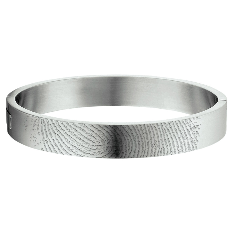 Deze RVS armband met vingerafdruk vormt een wel heel bijzondere manier om uw liefde uit te drukken. Op de scharnierarmband wordt met een laser een afbeelding van een vingerafdruk, handpalm, dierenpoot of babyhandje of –voetje gegraveerd. Door de toevoeging van de afdruk wordt de armband een blijvende herinnering aan een geliefde of dierbare.