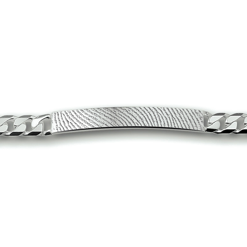 De zilveren schakelarmband met plaat is verkrijgbaar in diverse lengtematen en verschillende breedtes. Zo kunt u zelf bepalen wat het beste bij u past. Om de vingerafdrukarmband verder te personaliseren kunt u er tevens voor kiezen aan de binnenkant een persoonlijke tekst te laten graveren.