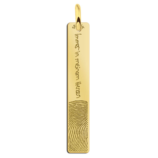 Gouden bar hanger met vingerafdruk en geschreven tekst