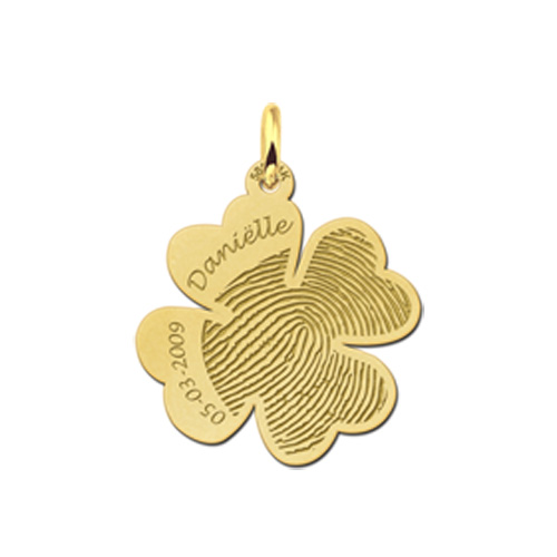 Gouden vingerafdruk hanger klaver met naam en datum Names4ever