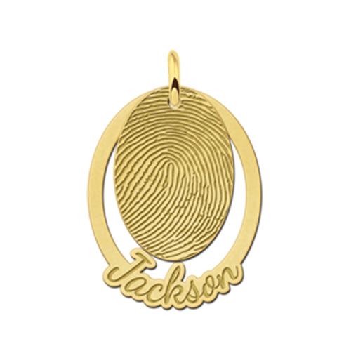 Gouden vingerafdruk hanger tweedelig ovaal Names4ever