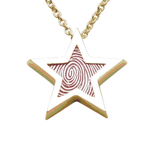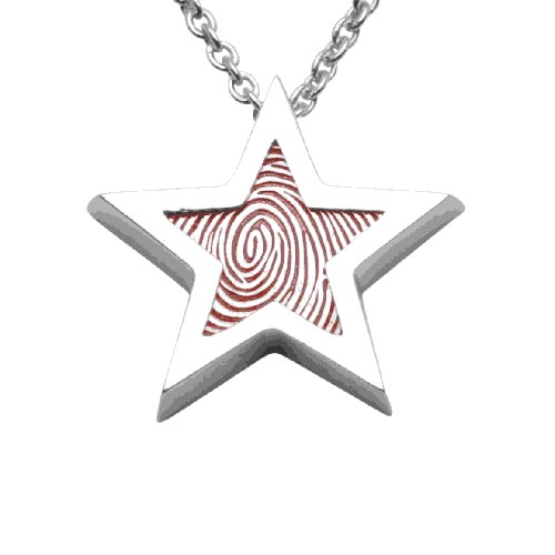 Vingerafdruk hanger ster van het merk Soulmate Treasure waarbij de vingerafdruk van uw dierbare in de plaat wordt gegraveerd. De ster hanger is 15mm groot en 3mm dik. Bij deze hanger loopt de ketting door de het bovenste puntje van de hanger heen wat zorgt voor een speels en subtiel uiterlijk. Het sieraad stelt u zelf samen waarbij u kunt kiezen uit de volgende opties: