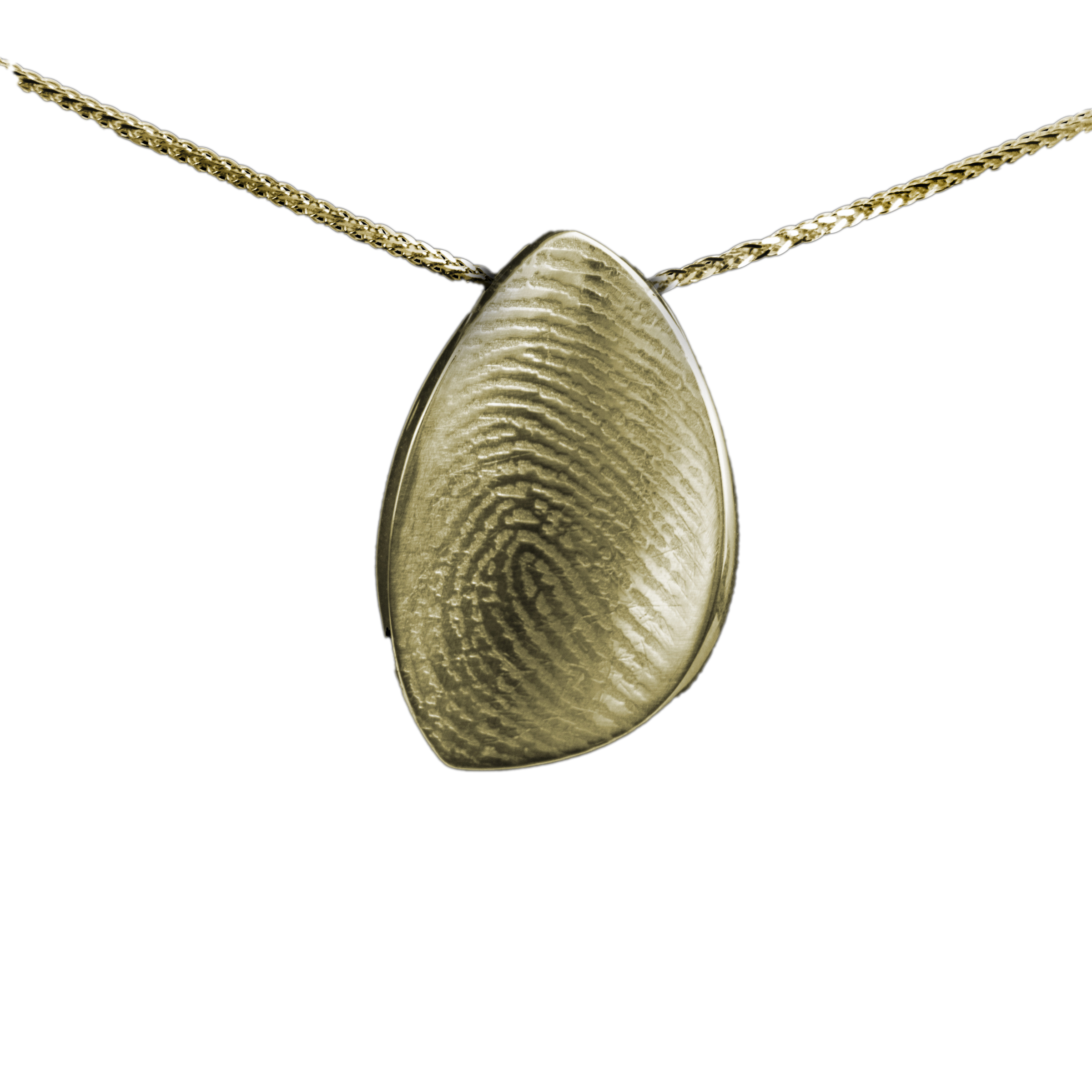 Subtiele en chique 14 karaat geelgouden hanger in bijzonder design. Deze kettinghanger is een elegante eyecatcher door zijn moderne en sierlijke ontwerp, maar ook door het unieke patroon dat wordt gevormd door een gravure van een vingerafdruk van uw keuze. Dit kan de vingerafdruk van uw kind zijn, of van uw partner. Of kies ervoor om zowel uw eigen vingerafdruk als die van uw partner in de hanger te laten graveren zodat deze een uniek symbool van liefde wordt.