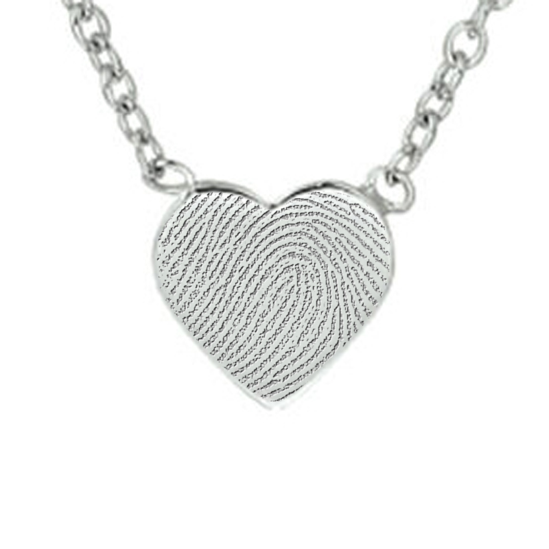 Subtiele kleine vingerafdrukhanger in de vorm van een hartje. Met deze mooie ketting draagt u uw herinnering aan een geliefde of dierbare letterlijk op uw hart. In de hanger van 7mm groot wordt door middel van een laser de vingerafdruk van een voor u bijzonder persoon gegraveerd. Een teken van liefde aan uw partner bijvoorbeeld, of een aandenken aan een overledene. Ook is het mogelijk om een geschaalde afbeelding van een handpalm, dierenpootje of babyvoetje of –handje in de hartvormige hanger te laten verwerken.