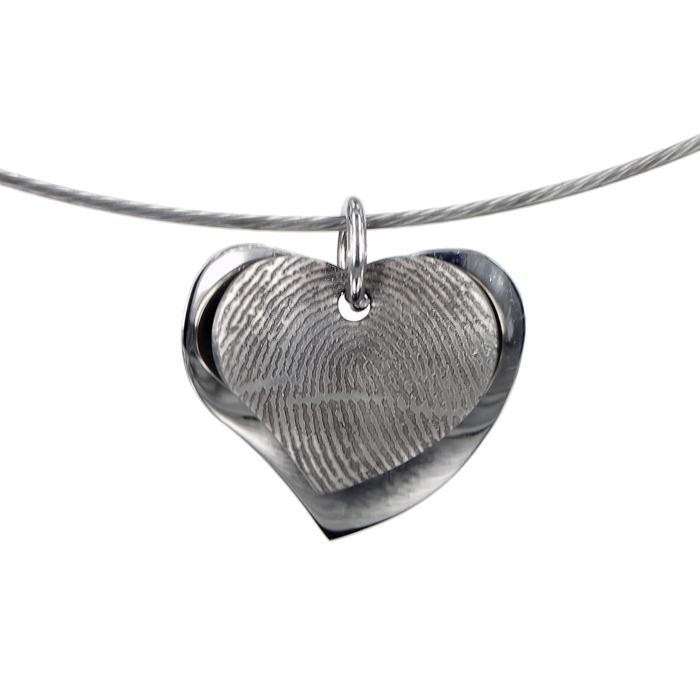 Zilveren Vingerafdruk hanger dubbel hart 833