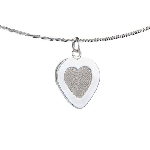Zilveren Vingerafdruk hanger hart met rand