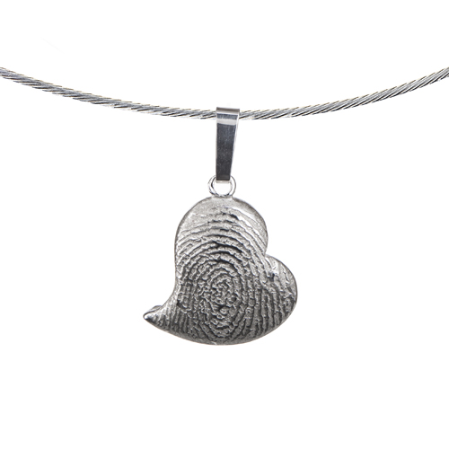 Sommige herinneringen zijn er om nooit te vergeten. Laat deze daarom vereeuwigen in een prachtige hartvormige vingerafdrukhanger. De sierlijke hanger wordt voor u gepersonaliseerd door middel van een gravure van de vingerafdruk van een geliefde of dierbare. Door zijn bijzondere, elegante vorm is de vingerafdrukhanger zeer geschikt als uniek huwelijkscadeau. Ook is het mogelijk om in de hanger een geschaalde afdruk van een handpalm, dierenpootje of babyhandje of –voetje te laten graveren. De hartvormige vingerafdrukhanger meet 19 bij 19,3 millimeter.