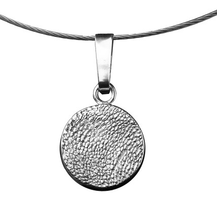 Ronde holgeslagen afdrukhanger van 925 zilver. In de hanger wordt een afdruk verwerkt van uw dierbare. Dit kan een afdruk zijn van een vinger, hand, dierenpoot, babyhandje of babyvoetje. Wij kunnen met alle afdrukken overweg zoals inkt, was, rubber ect. Na het plaatsen van de bestelling ontvangt u de instructies om de afdruk naar ons toe te sturen. Indien gewenst kunt u ook een afdrukset meebestellen welke wij naar u toesturen. Een kleine afdrukset is geschikt voor een vinger. Een grote afdrukset is geschikt voor een handpalm, babyvoetje of dierenpoot.
