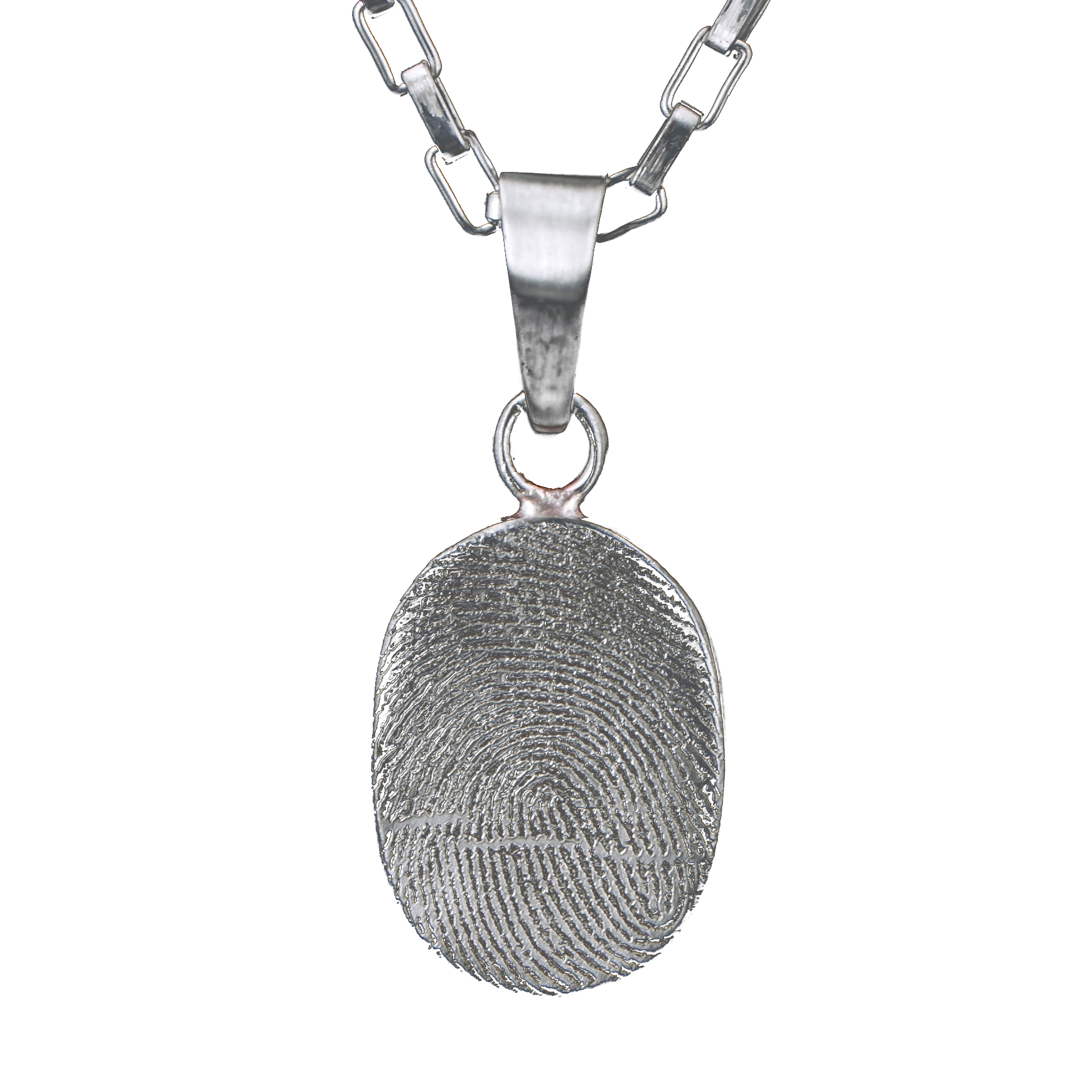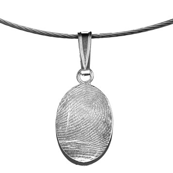Ovale afdrukhanger van 925 zilver. In de hanger wordt een afdruk verwerkt van uw dierbare. Dit kan een afdruk zijn van een vinger, hand, dierenpoot, babyhandje of babyvoetje. Wij kunnen met alle afdrukken overweg zoals inkt, was, rubber ect. Na het plaatsen van de bestelling ontvangt u de instructies om de afdruk naar ons toe te sturen. Indien gewenst kunt u ook een afdrukset meebestellen welke wij naar u toesturen. Een kleine afdrukset is geschikt voor een vinger. Een grote afdrukset is geschikt voor een handpalm, babyvoetje of dierenpoot.