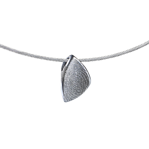 De zilveren afdrukhanger heeft een afmeting van 14,5 x 10 mm en kan zowel mat als glansend afgewerkt worden.