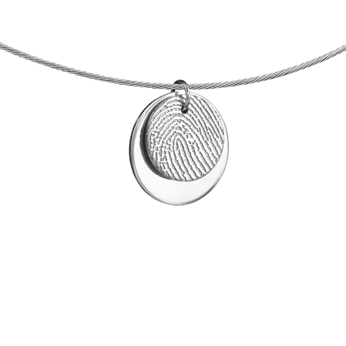 zilveren dubbele ronde hanger met vingerafdruk