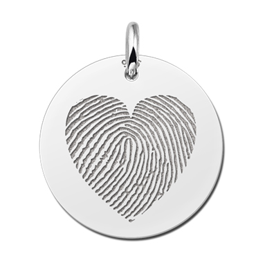 Zilveren ronde hanger met vingerafdruk in hartvorm