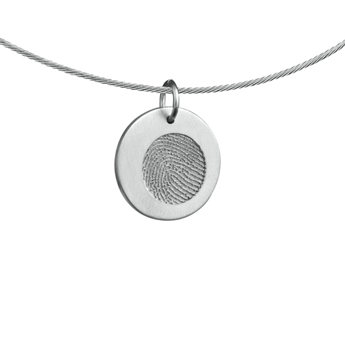 Elegant en toch speels. Het ronde design van deze hanger met vingerafdruk maakt het sieraad tot een moderne en eigentijdse uiting van liefde en herinnering. In de hanger wordt met grote precisie de vingerafdruk van een geliefde of dierbare gegraveerd. Dat maakt de hanger zeer geschikt als huwelijkscadeau of juist als gedenksieraad voor een overledene. Ook is het mogelijk om een geschaalde afbeelding van een handpalm, dierenpootje of babyhandje of –voetje in de afdrukhanger te laten zetten.