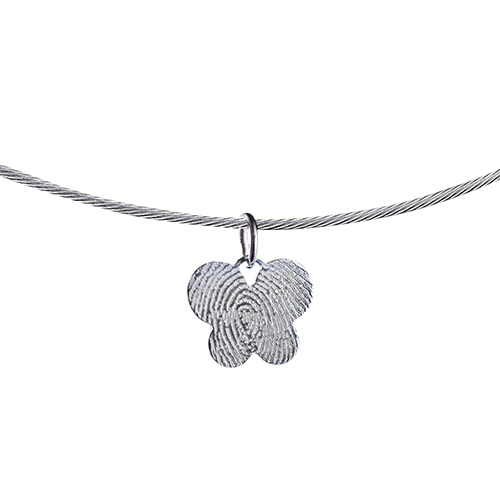 Deze vingerafdrukhanger in de vorm van een vlinder is een prachitge manier om uw dierbare of geliefde altijd dichtbij te dragen. In de hanger wordt door middel van een laser de door u aangeleverde afdruk gegraveerd. Ook is het mogelijk om een geschaalde afbeelding van een handpalm, dierenpootje of babyvoetje of –handje in de vlindervormige hanger te laten verwerken.