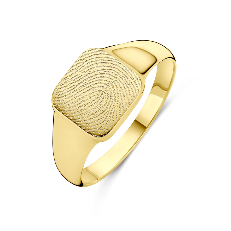 In deze 14k gouden vierkanten zegelring wordt de afdruk van uw geliefde, een kind, een huisdier of een overleden dierbare gegraveerd. In de binnenzijde van de ring is er tevens ruimte voor het graveren van een persoonlijke tekst. Dit kan een naam, datum of bijzondere uitspraak zijn.