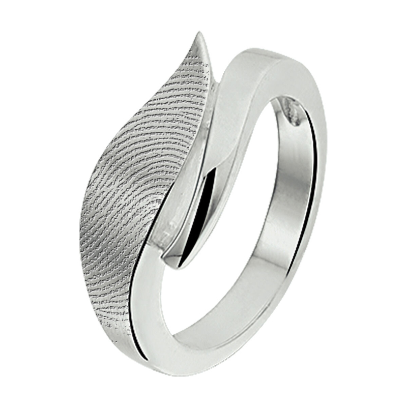 In deze sierlijke zilveren ring wordt de afdruk van uw geliefde, een kind, een huisdier of een overleden dierbare gegraveerd. In de binnenzijde van de ring is er tevens ruimte voor het graveren van een persoonlijke tekst. Dit kan een naam, datum of bijzondere uitspraak zijn.