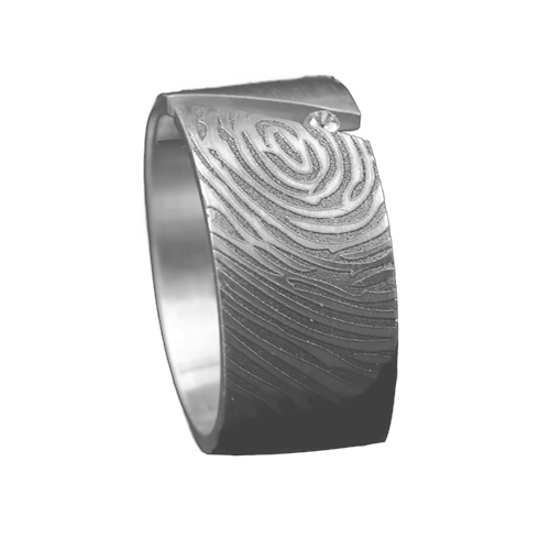 Vingerafdruk ring van 925 zilver met een steen naar keuze en een vingerafdruk van uw geliefde of dierbare. Het is ook mogelijk om een afdruk van een handpalm, dierenpoot, babyvoetje of babyhandje in de ring te laten verwerken..