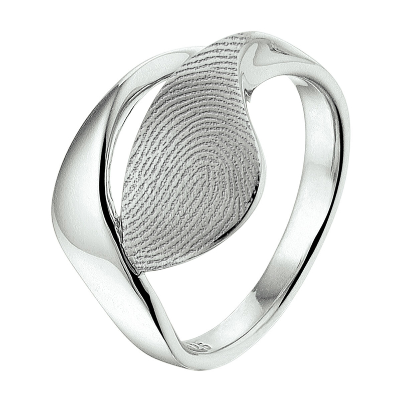 In deze zilveren twisted touch ring wordt de afdruk van uw geliefde, een kind, een huisdier of een overleden dierbare gegraveerd. In de binnenzijde van de ring is er tevens ruimte voor het graveren van een persoonlijke tekst. Dit kan een naam, datum of bijzondere uitspraak zijn.