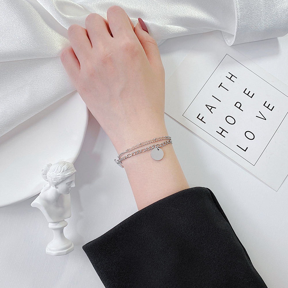 Sierlijk RVS armbandje met 3 verschillende smalle bandjes. Aan de schakelketting van 3 mm breed zitten 3 ronde bedels van 1 cm. De armband heeft een lengte van 18 t/m 21 cm.