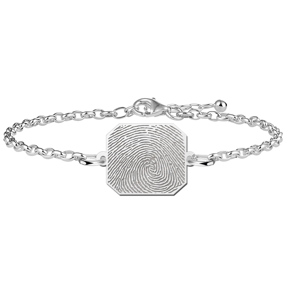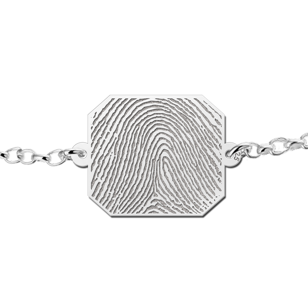 Zilveren schakel armband met vingerafdruk op rechthoek hoekig