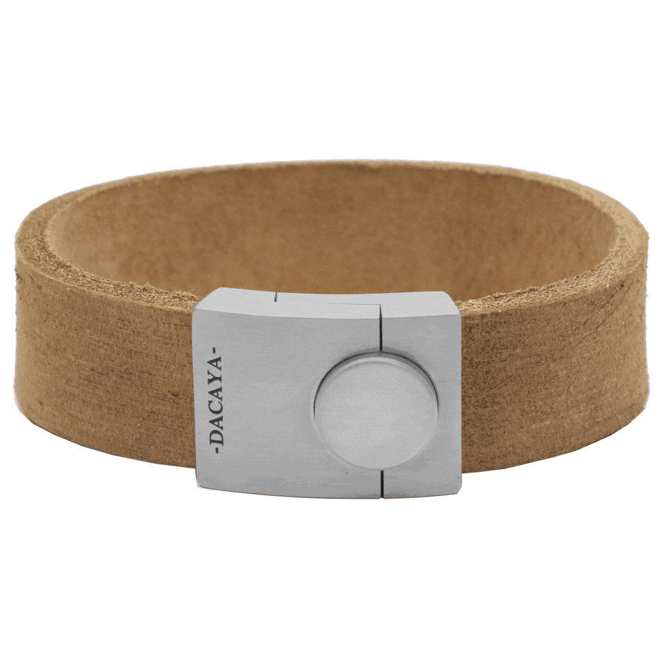 Stoere leren armband van het merk Dacaya met een stevige grijskleurige leren band. Deze armband is 20mm breed. Het leer is soepel en plat afgewerkt waardoor de armband prettig draagt. De armband is voorzien van een degelijke RVS sluiting. De armband is verkrijgbaar in een lengtemaat naar keuze. De armband kan strak, middel of los gedragen worden. De polsmaat dient bij de knokkel gemeten te worden, houd hierbij rekening met de volgende richtlijn: