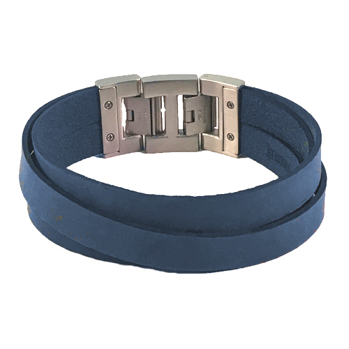 Stoere leren armband in de kleur blauw van het merk Dacaya. Deze stoere armband is 28mm breed en heeft vier soepele leren banden waarvan er twee kruislings lopen.