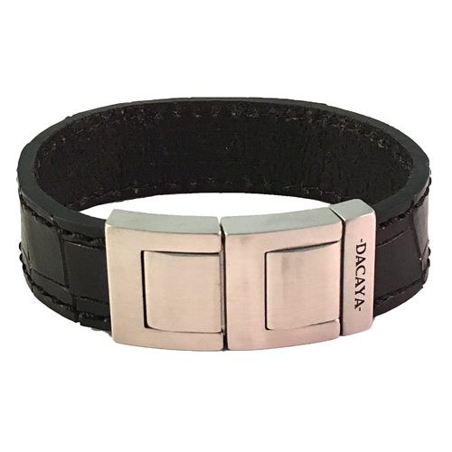 Zwarte leren armband van het merk Dacaya met een krokodillen reliëf en stiksel aan beide zijden. Deze leren armband is 20mm breed en is vervaardigd uit soepel leder van hoge kwaliteit. De armband is subliem afgewerkt.
