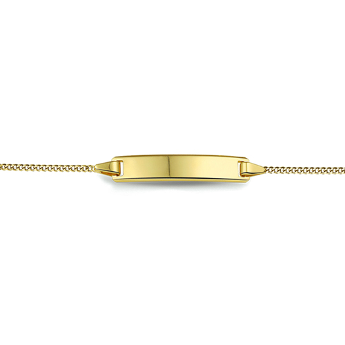 Deze mooie subtiele gouden armbandje is gemaakt van 9k geelgoud en is hoogglans afgewerkt. Het graveerplaatje heeft een afmeting van 25x5mm en een dikte van 0.9mm. De armband is verkrijgbaar in de lengtes: 14-16 cm en 16-18 cm.