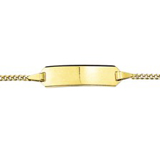 Op het plaatje van dit gouden plaatarmbandje kan een naam en/of datum worden gegraveerd. Hierbij heeft u de keuze uit een sierlijke schrijfletter of een standaard blokletter.