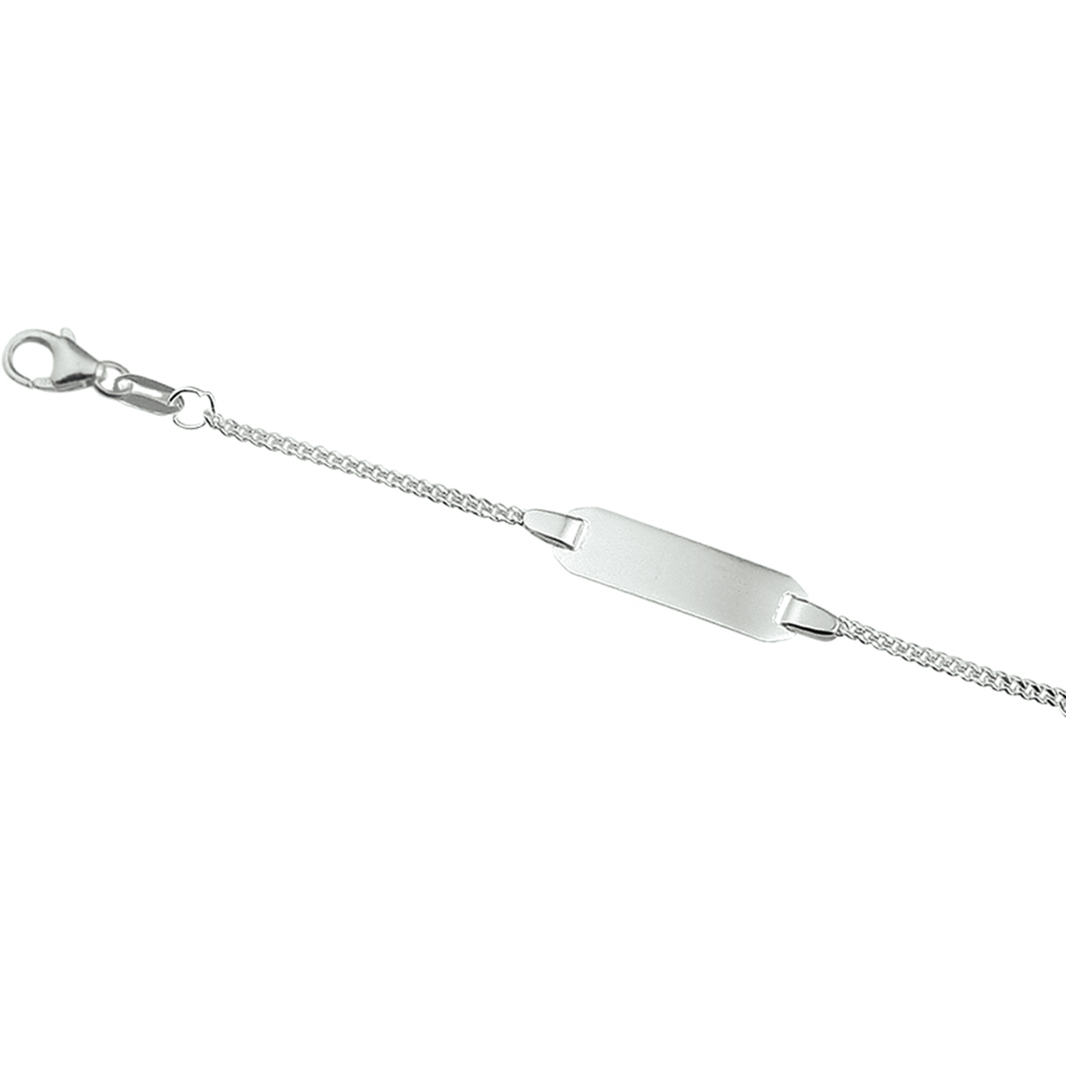 Zilver Kinder armbandje met graveerplaatje van 5mm hoog en 20mm lang. De naam en/of datum wordt in hoge kwaliteit in het graveerplaatje van de armband gegraveerd, u heeft hierbij de keuze uit een sierlijke schrijfletter of een standaard blokletter: