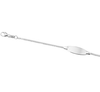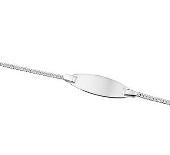 Ovaal zilver baby armbandje met naam graveren. De naam wordt in hoge kwaliteit in het graveerplaatje van de armband gegraveerd, u heeft hierbij de keuze uit een sierlijke schrijfletter of een standaard blokletter.