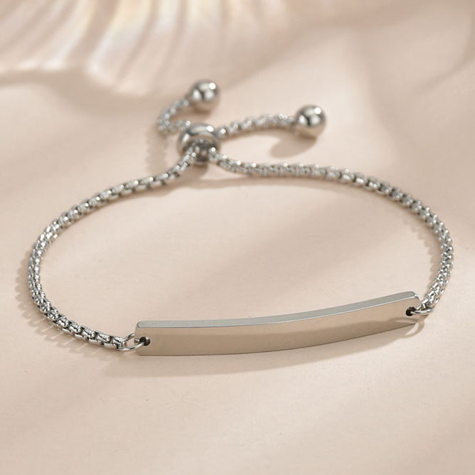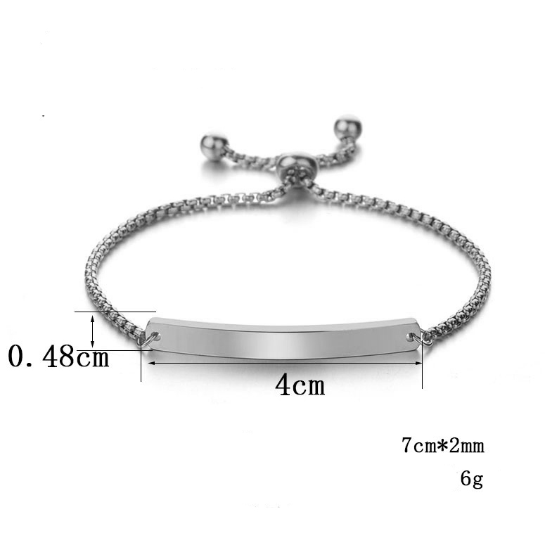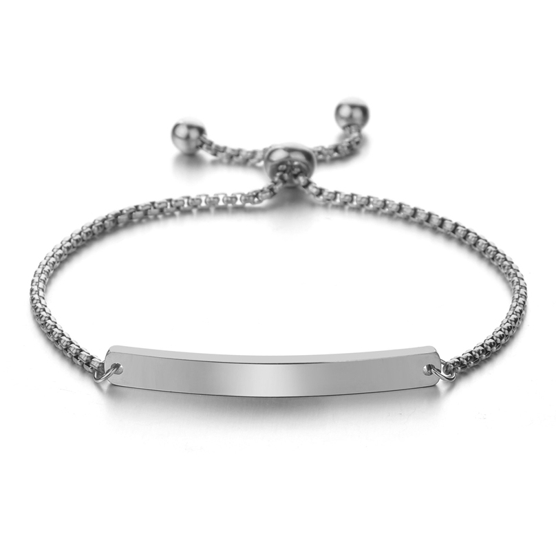Dit stalen armbandje in prachtig hoogglans zilverkleur is verstelbaar tot 16,5cm. De schakels hebben een hoogte van 0,18 cm. Het graveerplaatje heeft een afmeting van 4 x 0,5cm en er is ruimte voor maximaal 10 tekens, inclusief spaties. De naam en/of datum wordt in hoge kwaliteit in het graveerplaatje van de armband gegraveerd, u heeft hierbij de keuze uit een sierlijke schrijfletter of een standaard blokletter: