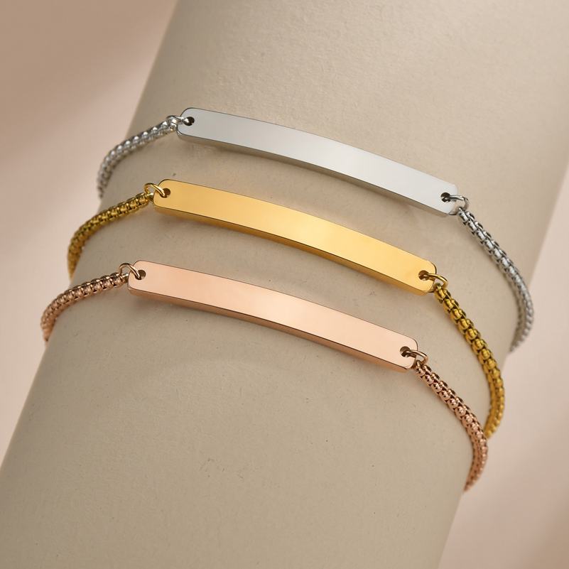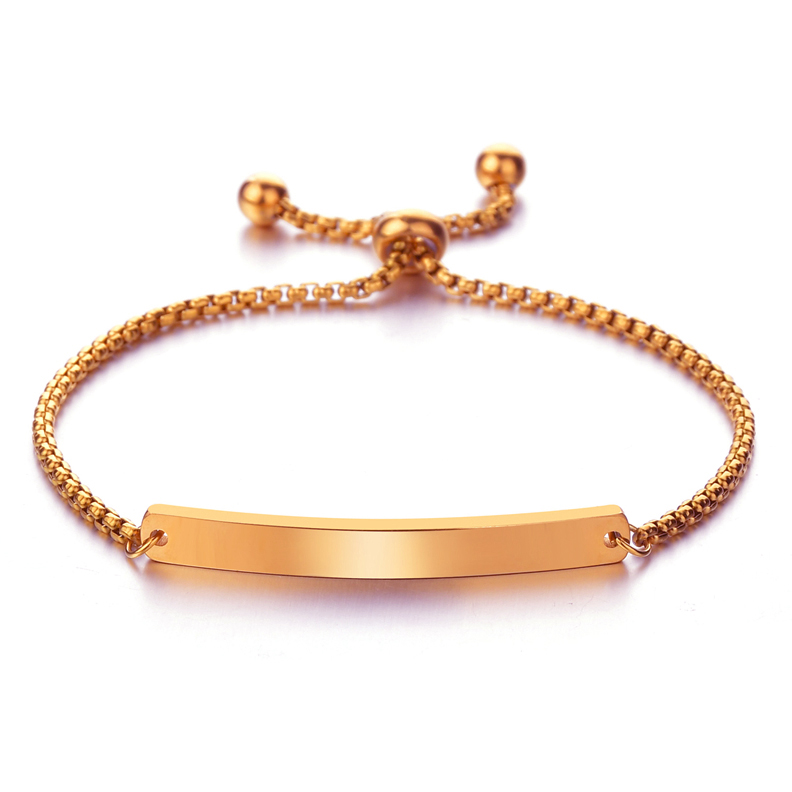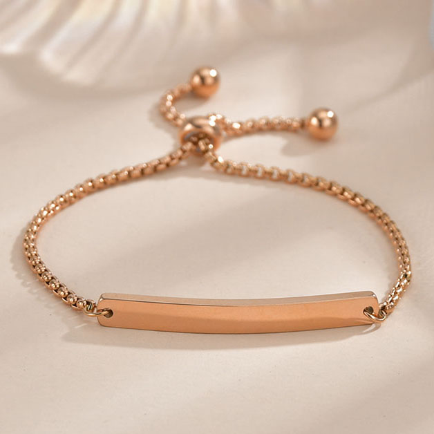 Dit stalen armbandje in prachtig hoogglans rosegoudkleur is verstelbaar tot 17cm. De schakels hebben een hoogte van 0,18 cm. Het graveerplaatje heeft een afmeting van 4 x 0,5cm en er is ruimte voor maximaal 10 tekens, inclusief spaties. De naam en/of datum wordt in hoge kwaliteit in het graveerplaatje van de armband gegraveerd, u heeft hierbij de keuze uit een sierlijke schrijfletter of een standaard blokletter: