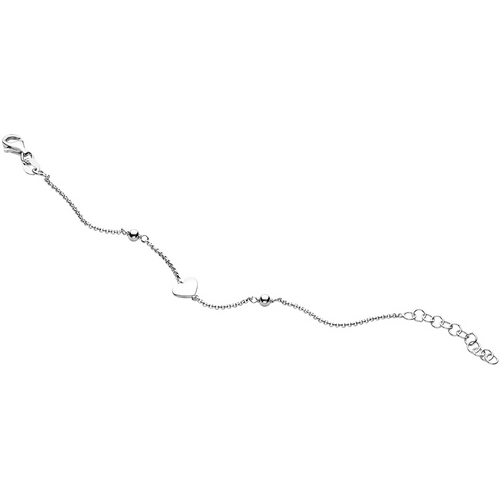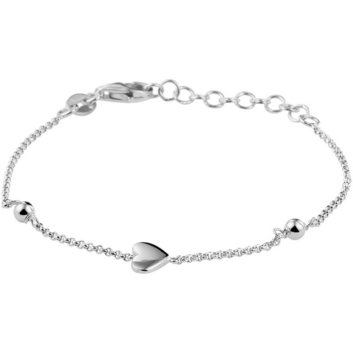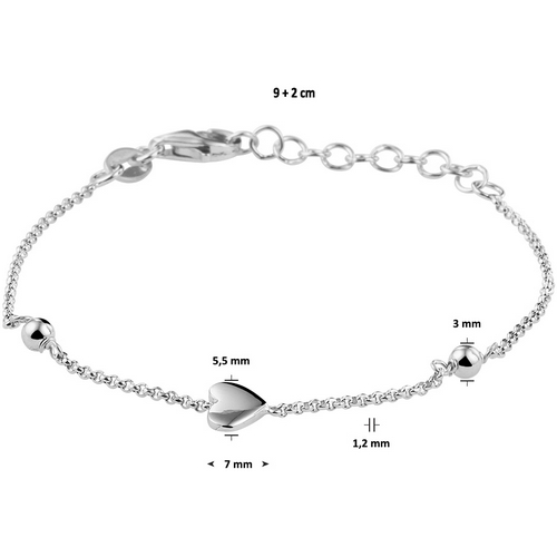 Het is een fijn gerhodineerd 925 zilveren armband, uitgevoerd met een hoogglans hart van 5.5x7 mm, bolletjes van 3mm, een karabijn sluiting en een jasseron schakelarmband.