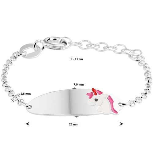 Het is een  925 zilveren armband, uitgevoerd met een leuke eenhoorn. Het graveerplaatje heeft afmetingen van 21x7 mm