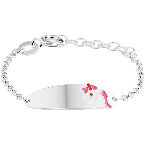 Zilveren kinderarmbandje met eenhoorn. In de graveerplaat kan een naam en/of datum gegraveerd worden van maximaal 12 tekens lang. U heeft hierbij de keuze uit een sierlijke schrijfletter of een standaard blokletter.
