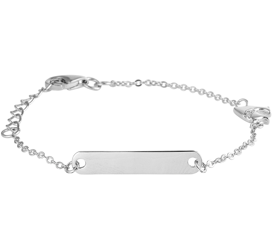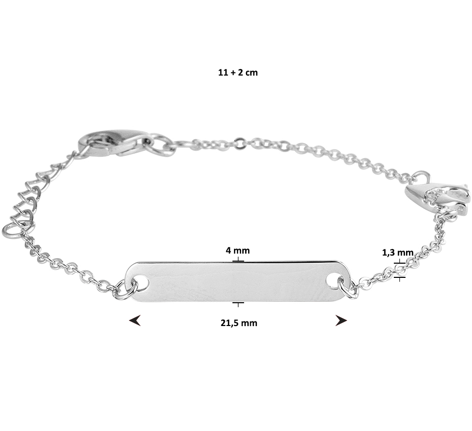 Het is een 925 zilveren armband. Het graveerplaatje heeft afmetingen van 21,5x4 mm. Dit armbandje is verkrijgbaar in de afmeting 9-11 cm.