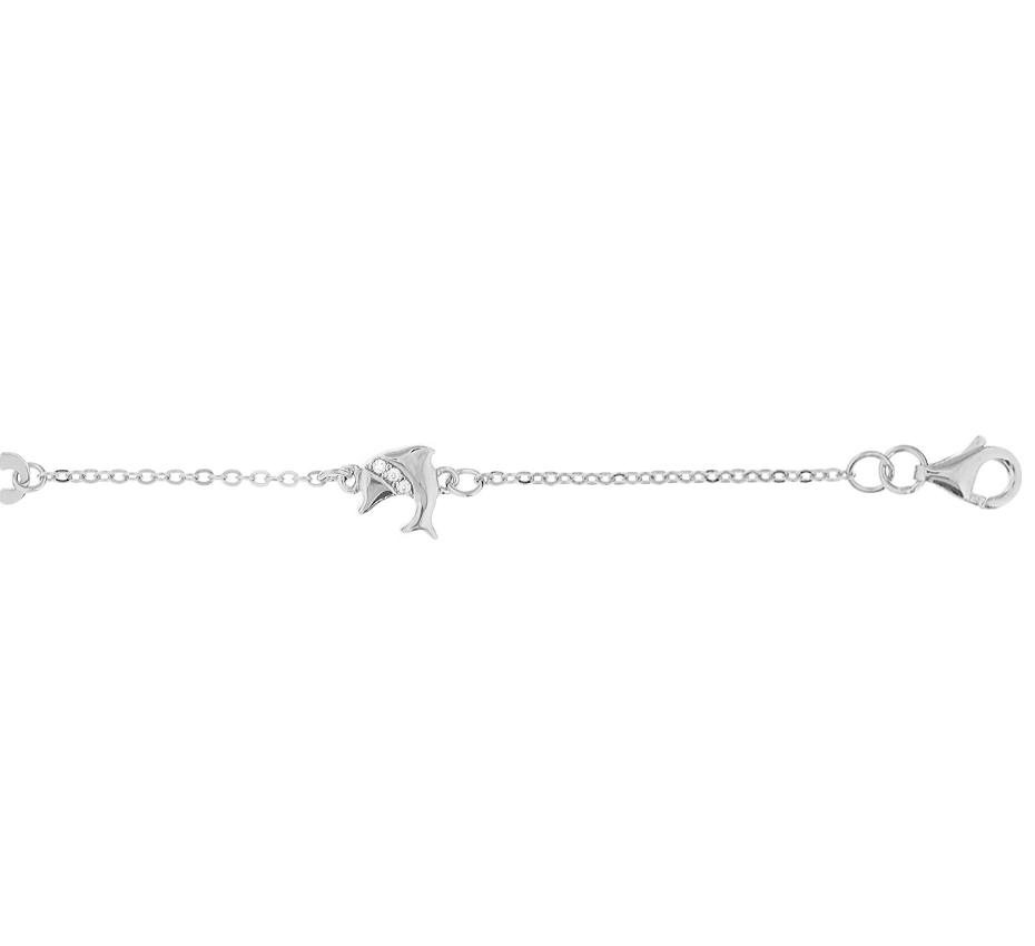Zilveren plaatarmbandje met dolfijn en zirkonia-steentjes