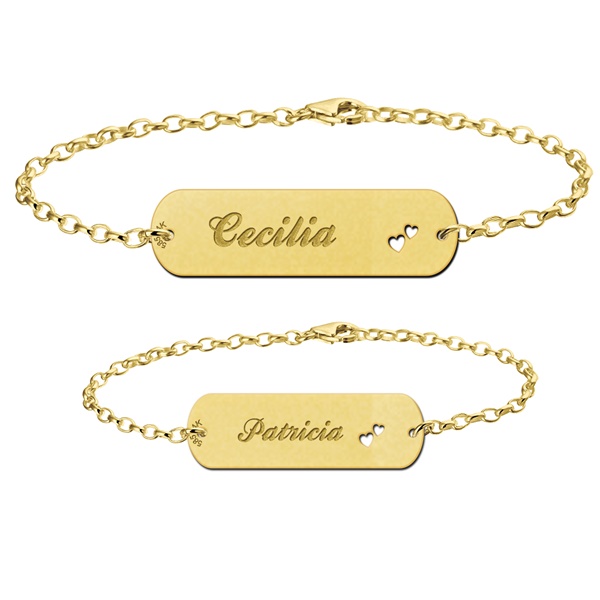 Gouden Plaatarmbanden set uitgesneden hartjes