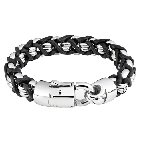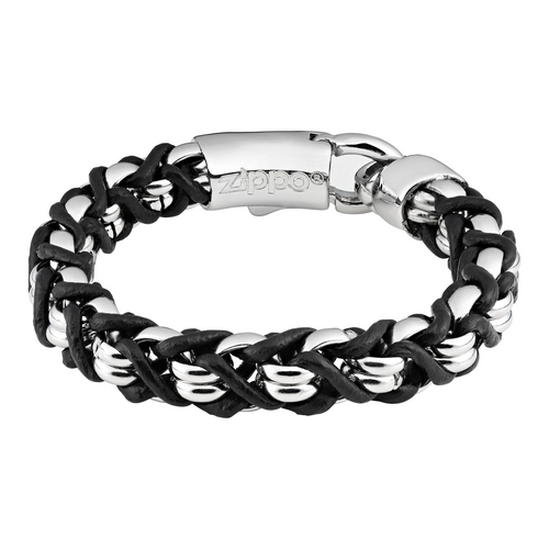 Zippo staal gevlochten lederen armband is een rond RVS armband die is vervlochten met een leren band. De sluiting van de armband is zilverkleurige hoogglanzen hook clasp.
