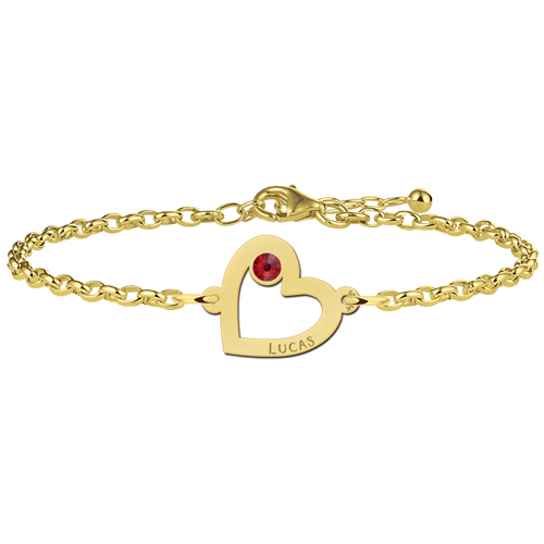 Een fraaie 14 karaats gouden armband met daaraan een uitgesneden hartjes hanger waarop u een naam van iemand die u lief heeft kunt graveren. Hierop kunt u ook nog kiezen voor de perfecte geboortesteen.