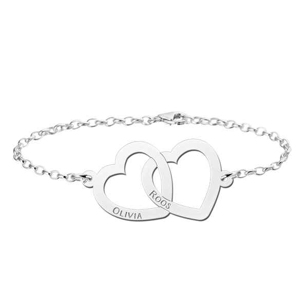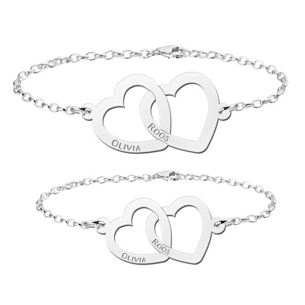 Zilveren Naamarmbanden set hartjes