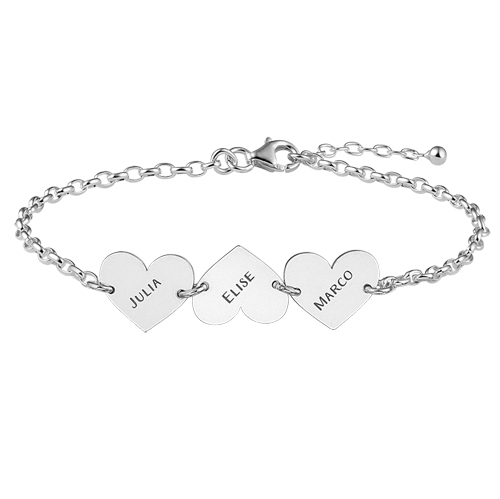 Deze unieke hanger is 13.5 bij 11 millimeter groot en is 17 tot 20 cm. De dikte van de hanger is 0,7 mm. Personaliseer uw armband verder door zelf drie namen van maximaal 10 tekens te kiezen die gegraveerd worden met een standaard lettertype.