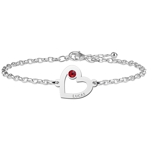 Een fraaie 925 sterling zilveren armbandje met daaraan een uitgesneden hartjes hanger waarop u een naam van iemand die u lief heeft kunt graveren. Hierop kunt u ook nog kiezen voor de perfecte geboortesteen.