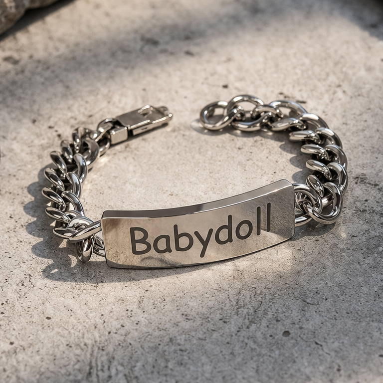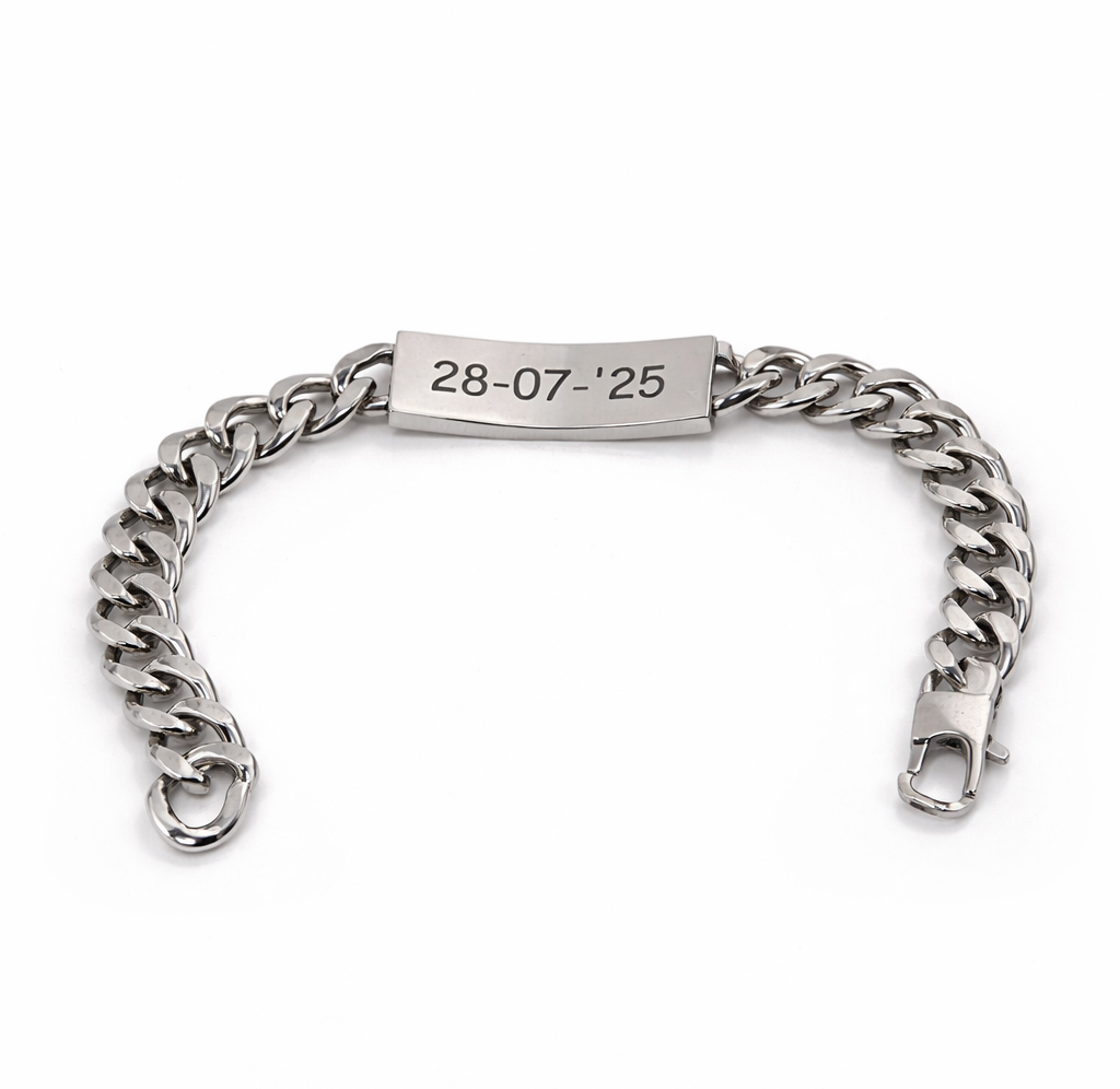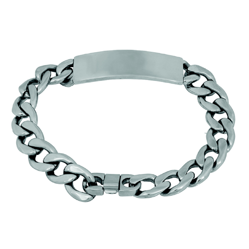 Prachtige RVS plaatarmband met grove schakels. De armband met plaat heeft een stoer voorkomen door de grootte van de schakels. Het is mogelijk de plaat te graveren met een korte tekst of naam naar keuze in de voorkant en/of achterkant. De tekst voegt u eenvoudig toe in de vervolgstappen. U heeft de keuze uit de volgende lettertypes: