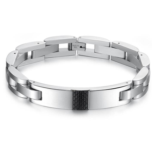 RVS plaatarmband met stoere groffe schakels. De armband is hoogglans afgewerkt met een carbon-look vak in het midden van de plaat. De plaat heeft het formaat 60x11mm. De armband heeft een lengte van 23cm. U kunt de armband ook in laten korten tot 21cm en 19cm. De verwijdere schakels voegen we in dat geval bij de armband zodat de armband altijd verlengd kan worden.