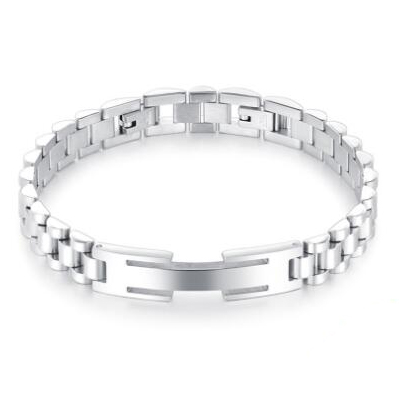 RVS plaatarmband met fijne schakels en een stoere plaat. De armband is hoogglans afgewerkt met een matte baan over de plaat. De plaat heeft het formaat 10x43mm. De armband heeft een lengte van 21,5cm welke in te korten is tot 18,5cm door het verwijderen van de eerste schakels door middel van de kliksluiting.